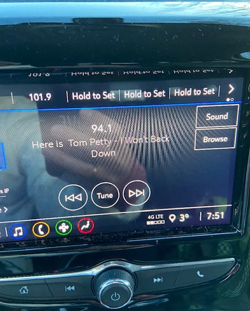 I also get specific signs from loved ones; for example, one family member who is also a Spirit Guide to me communicates to me through music, specifically Tom Petty. Below is a photo taken one morning where I was very emotional about my stance on something. I got in the car and this was a song that came on.