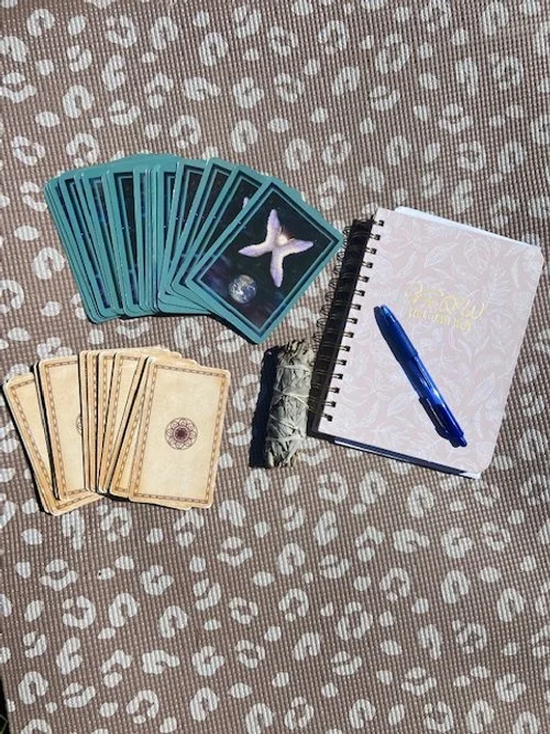 Find a comfortable seated position and close your eyes. Begin to focus on your breathing, inhaling deeply and exhaling completely. Repeat this for several rounds until you feel yourself in the present moment, fully in your body and at ease. When you feel calm and ready to begin, open your eyes and grab your deck or simply continue to meditate quietly on the following questions and see what comes up.
